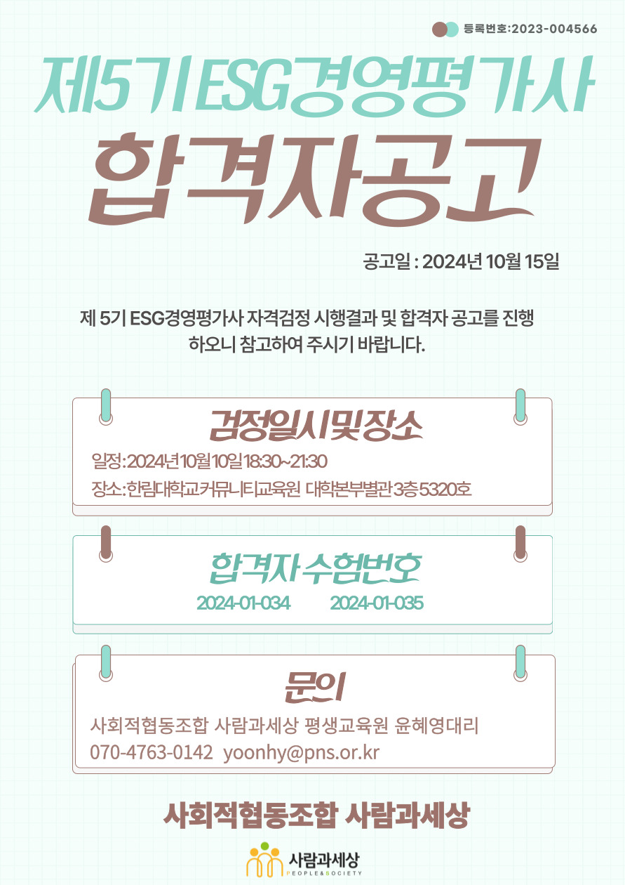 °øÁö °øÁö»çÇ× Á¦5±â ESG°æ¿µÆò°¡»ç ÇÕ°ÝÀÚ°ø°í pnscoop 2024-10-15