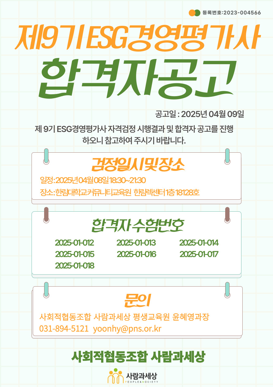 Á¦9±â ESG°æ¿µÆò°¡»ç ÇÕ°ÝÀÚ°ø°í