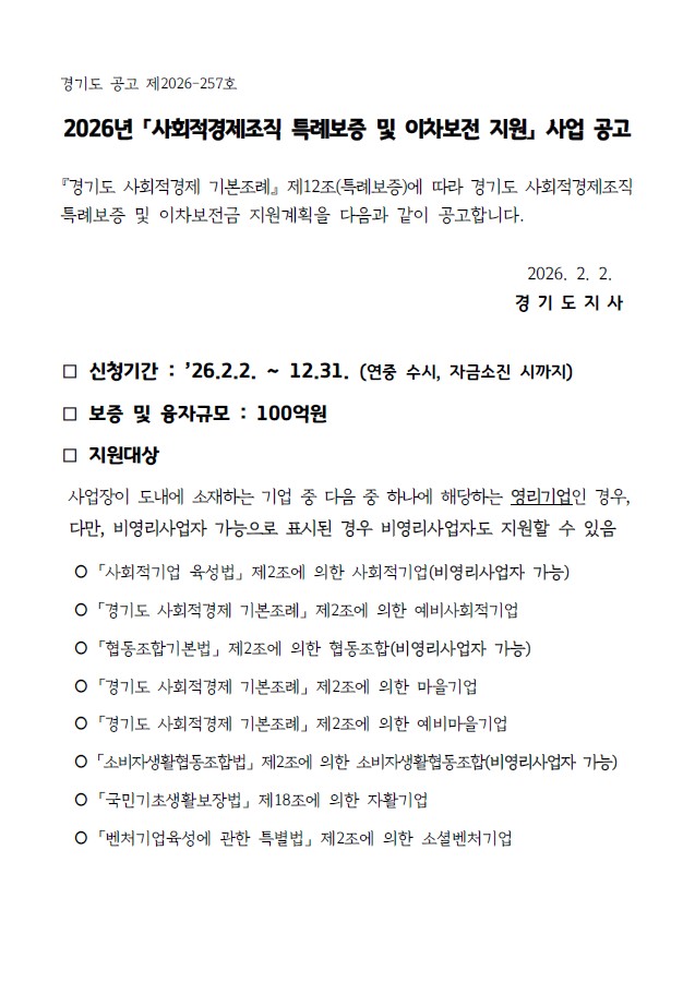 2026-257_2026³â_»çȸÀû°æÁ¦Á¶Á÷_Ư·Êº¸Áõ_¹×_ÀÌÂ÷º¸Àü_Áö¿ø_»ç¾÷_°ø°í¹®(ÁËÁ¾).pdf