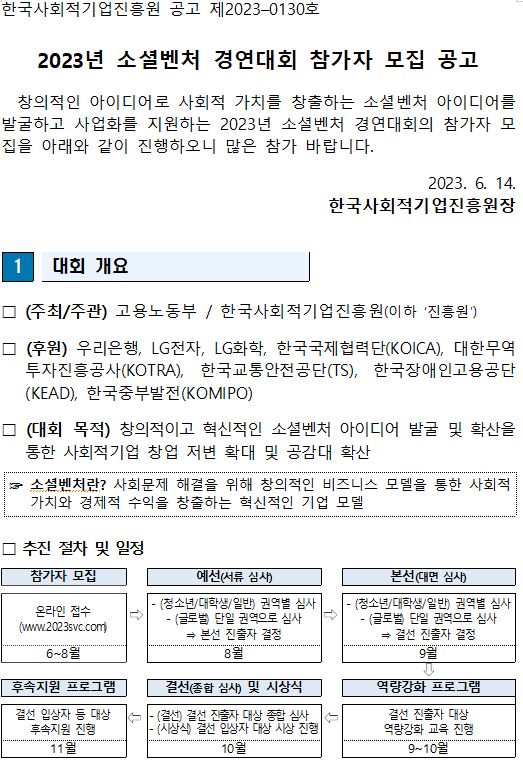 Á¦¸ñ [Çѱ¹»çȸÀû±â¾÷ÁøÈï¿ø] 2023³â ¼Ò¼Èº¥Ã³ °æ¿¬´ëȸ ¾È³»(~8/10(¸ñ))