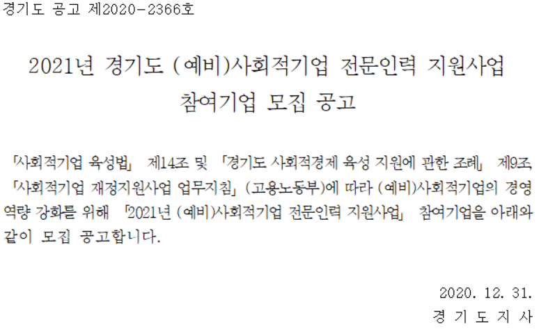 2021³â °æ±âµµ »çȸÀû±â¾÷ »çȸº¸Çè·á Áö¿ø»ç¾÷ Âü¿©±â¾÷ ¸ðÁý °ø°í