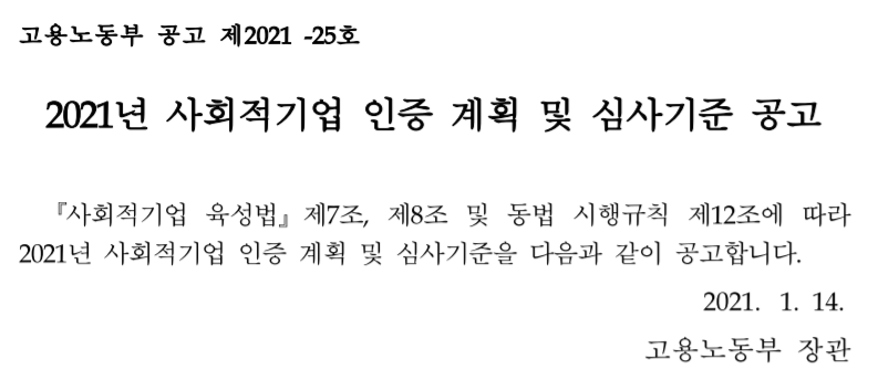20201³â »çȸÀû±â¾÷ ÀÎÁõ °èȹ
