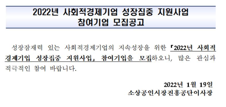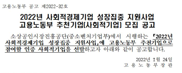 2022³â »çȸÀû°æÁ¦±â¾÷ ¼ºÀåÁýÁß Áö¿ø»ç¾÷ °í¿ë³ëµ¿ºÎ Ãßõ±â¾÷ ¸ðÁý°ø°í